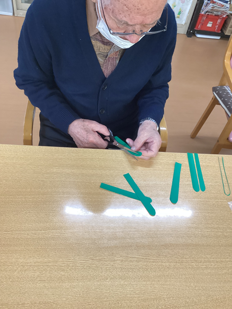 普段は脳トレパズルや将棋を楽しむ男性陣ですが… 片手が不自由とは思えないハサミさばき…